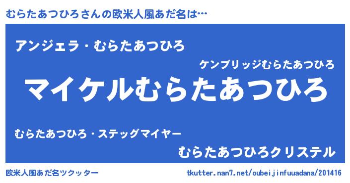 | 男性向けラノベタイトル風あだ名 | 『ムラタアツヒロアートオンライン』 |