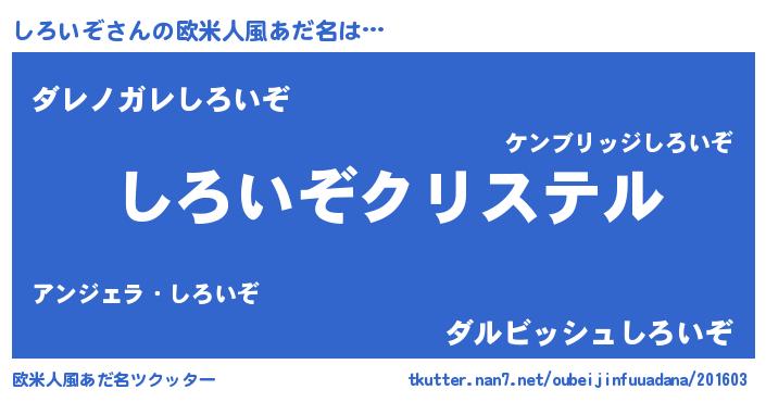 | 意味不明あだ名 | 『しろいぞフォーエバー』『自称しろいぞ』 |