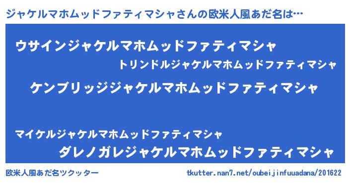 | 男性向けラノベタイトル風あだ名 | 『魔法科高校のジャケルマホムッドファティマシャ』 |