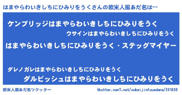 | ヘコむあだ名 | 『はまやらわいきしちにひみりをうく(苦笑)』 |