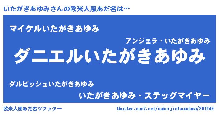 | ヘコむあだ名 | 『いたもー』『いたがきあゆみ(笑)』 |