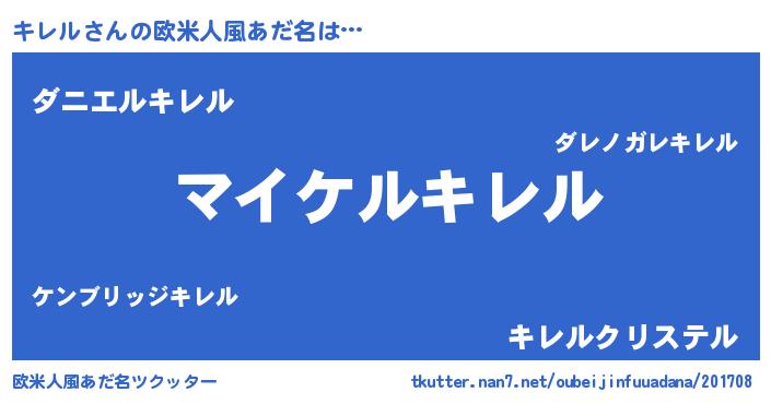 | ヒーロー風カッコイイあだ名 | 『スーパーキレル』『正義の使者キレル』 |