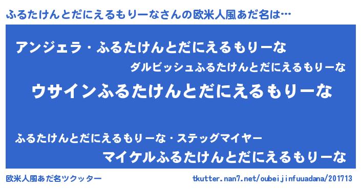 | 意味不明あだ名 | 『とにかく怪しいふるたけんとだにえるもりーな』 |