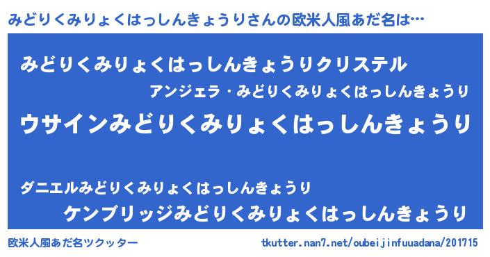 | 意味不明あだ名 | 『とにかく怪しいみどりくみりょくはっしんきょうり』 |