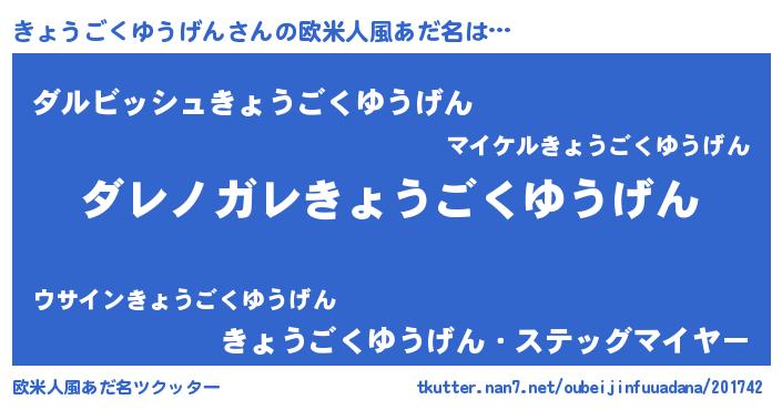 | ヘコむあだ名 | 『きょうごくゆうげん(笑)』『きょもー』 |