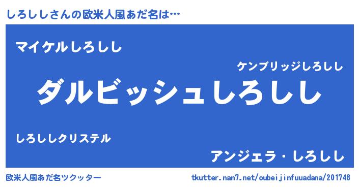 | ヘコむあだ名 | 『しろしし(苦笑)』『しろにゅー』 |