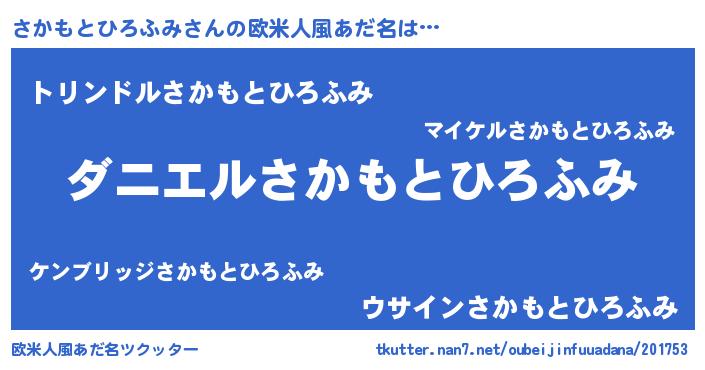 | 男性向けラノベタイトル風あだ名 | 『おまえをオタクにしてやるから、俺をさかもとひろふみにしてくれ! 』 |