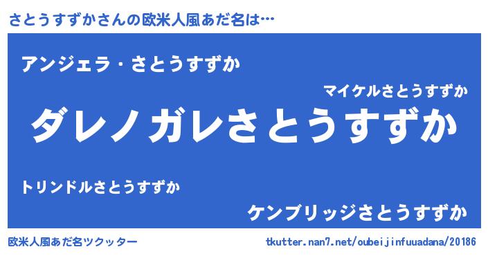| 意味不明あだ名 | 『住所不定無職さとうすずか(85歳)』 |