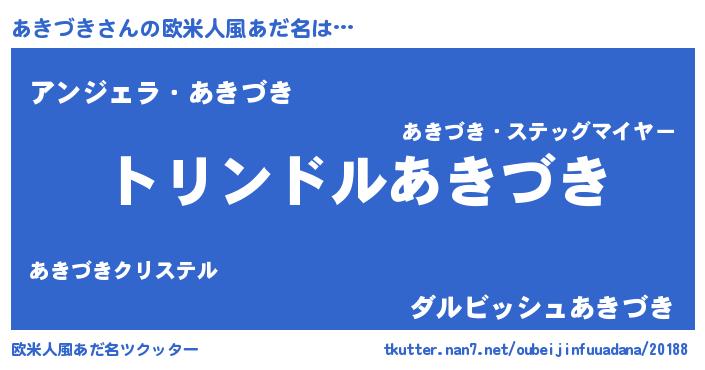 | 男性向けラノベタイトル風あだ名 | 『あきづき~年齢イコール彼女いない歴の魔法使い~』 |