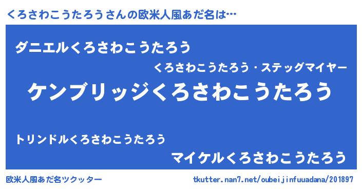 | 男性向けラノベタイトル風あだ名 | 『Re:くろさわこうたろうから始める異世界生活』 |