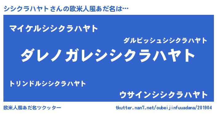 | 意味不明あだ名 | 『住所不定無職シシクラハヤト(5歳)』 |