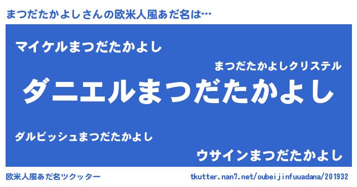 | 男性向けラノベタイトル風あだ名 | 『おまえをオタクにしてやるから、俺をまつだたかよしにしてくれ! 』 |
