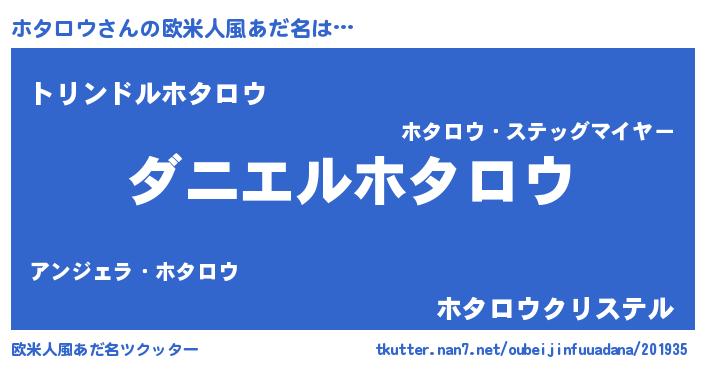 | 男性向けラノベタイトル風あだ名 | 『ノーゲーム・ノーホタロウ』 |