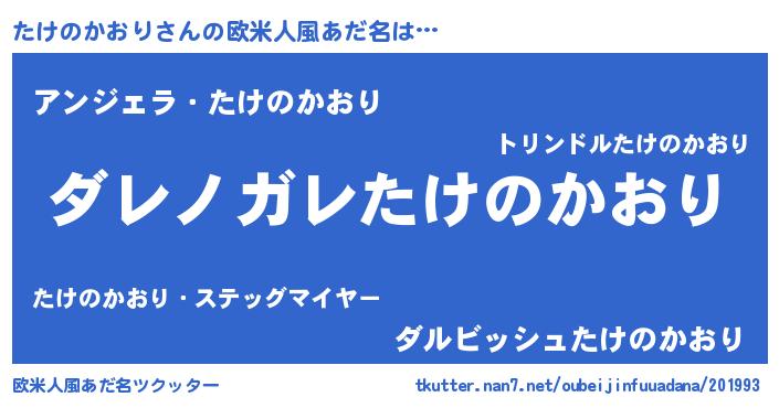 | ヘコむあだ名 | 『たけのかおり(笑)』『たけふぇ~』 |