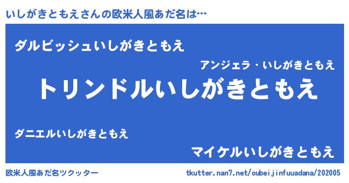 | 男性向けラノベタイトル風あだ名 | 『転生したらいしがきともえだった件』 |