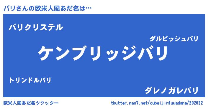 | 男性向けラノベタイトル風あだ名 | 『魔法科高校のバリ』『魔弾の王とバリ』 |