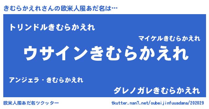 | 女子向けラノベタイトル風あだ名 | 『きむらかえれは平凡を望む』 |