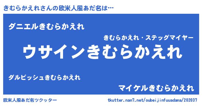 | 男性向けラノベタイトル風あだ名 | 『きむらかえれの嫁は女の子じゃないと思った?』 |