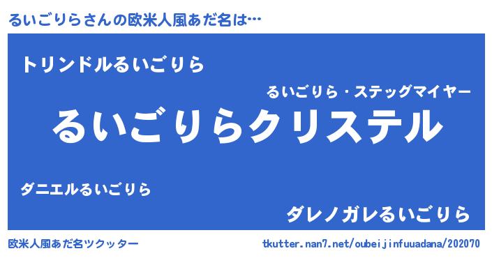 | ヘコむあだ名 | 『酢こんぶ』『るいお』『るいもー』 |