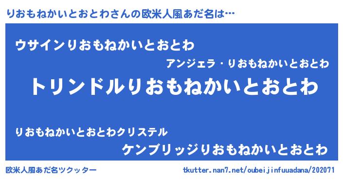 | 男性向けラノベタイトル風あだ名 | 『リオモネカイトオトワスレイヤー』 |
