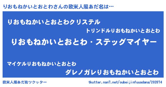 | 男性向けラノベタイトル風あだ名 | 『緋弾のリオモネカイトオトワ』 |