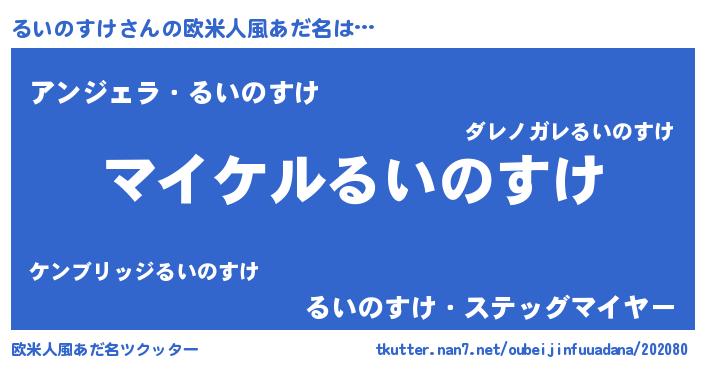 | 胡散臭い通販商品みたいなあだ名 | 『億万長者になれる霊験あらたかなお札…その名も「るいのすけ」』 |