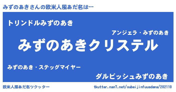 | 意味不明あだ名 | 『みずのあきフォーエバー』 |