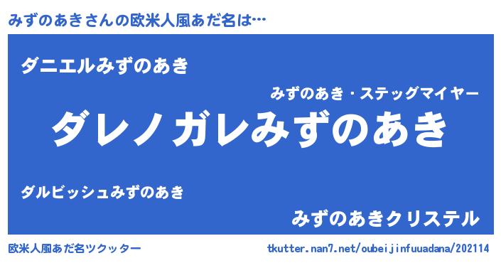 | 意味不明あだ名 | 『住所不定無職みずのあき(39歳)』 |