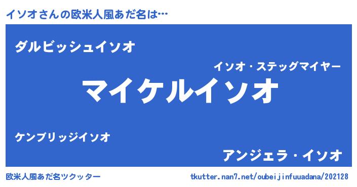 | 男性向けラノベタイトル風あだ名 | 『イソオアートオンライン』 |