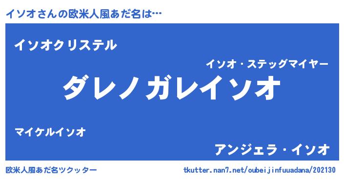 | 男性向けラノベタイトル風あだ名 | 『この素晴らしい世界にイソオを!』 |