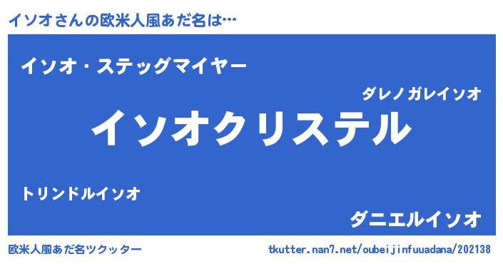 | 男性向けラノベタイトル風あだ名 | 『やはりイソオの青春ラブコメはまちがっている 』 |
