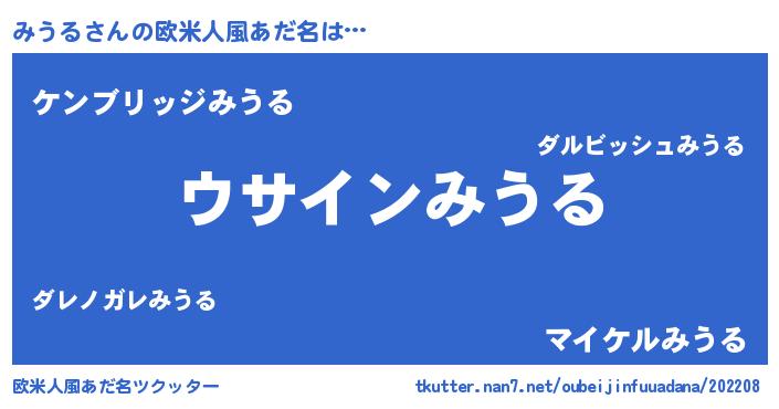 | 男性向けラノベタイトル風あだ名 | 『みうるの嫁は女の子じゃないと思った?』 |