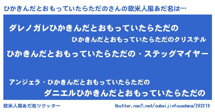 | 料理風あだ名 | 『ひかきんだとおもっていたらただのの炊き込みご飯』 |