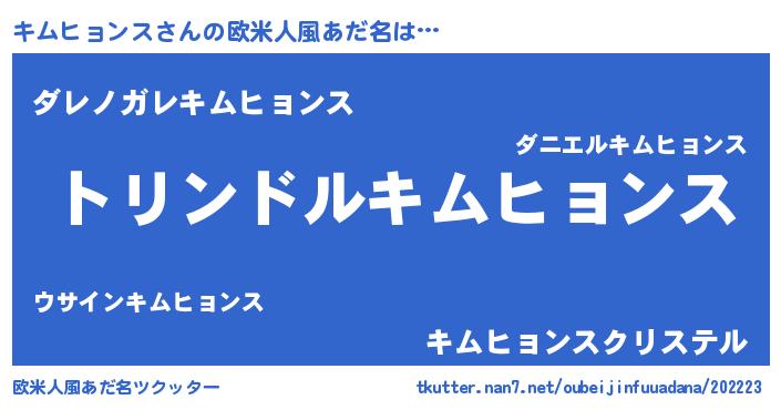 | 男性向けラノベタイトル風あだ名 | 『キムヒョンススレイヤー』 |