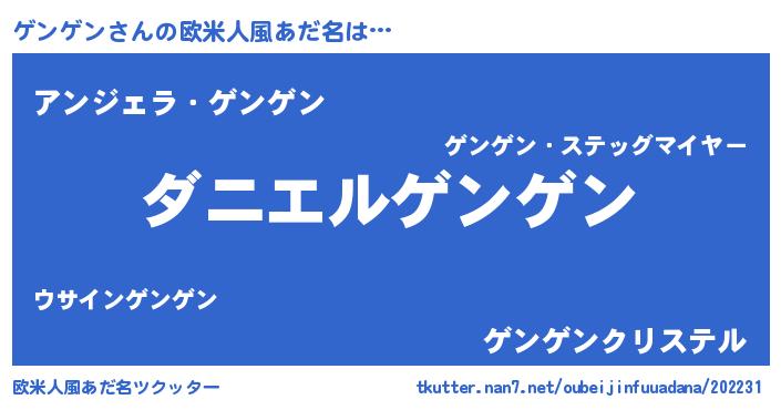 | ピコ太郎風あだ名 | 『ゲゲ太郎』『ピゲ太郎』『ゲン三郎』 |
