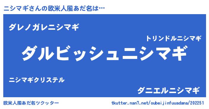 | ファンタジー風あだ名 | 『ニシディッシュ』『ヴァルニシーナ』 |