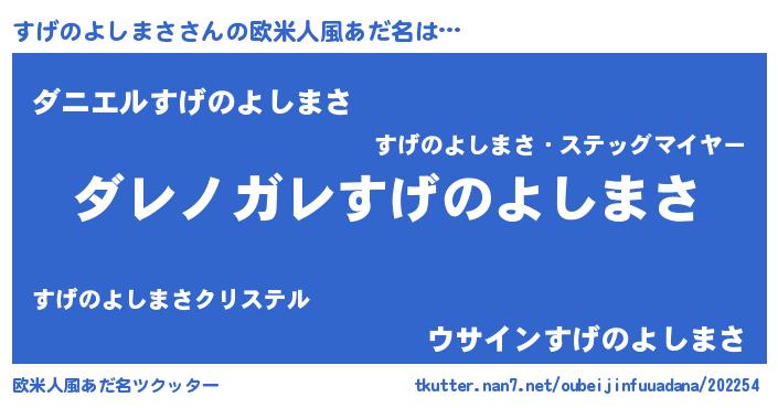 | 男性向けラノベタイトル風あだ名 | 『この素晴らしい世界にすげのよしまさを!』 |