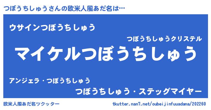 | 男性向けラノベタイトル風あだ名 | 『つぼうちしゅうの憂鬱』 |