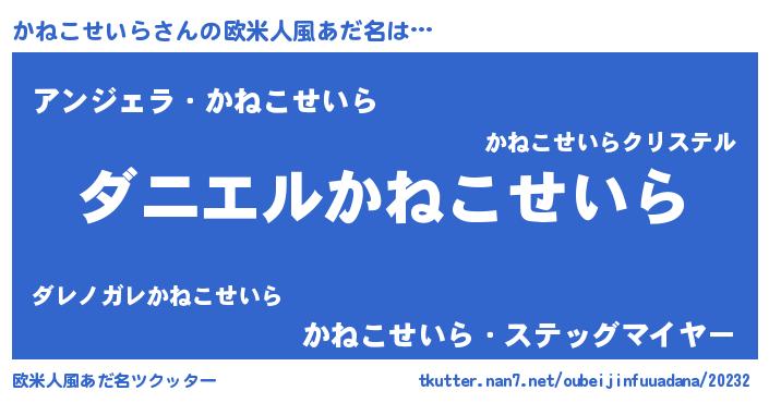 | 男性向けラノベタイトル風あだ名 | 『おまえをオタクにしてやるから、俺をかねこせいらにしてくれ! 』 |