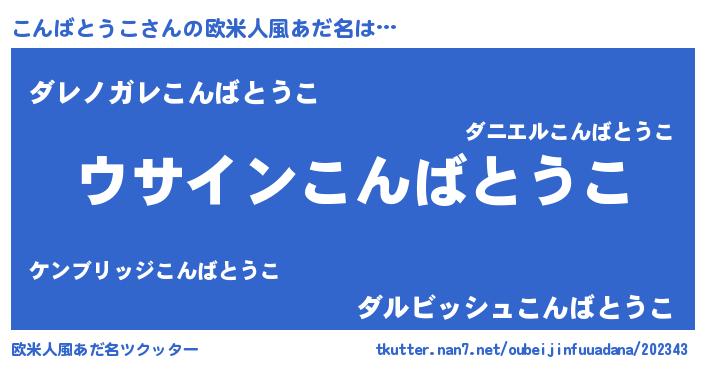| 男性向けラノベタイトル風あだ名 | 『こんばとうこの嫁は女の子じゃないと思った?』 |
