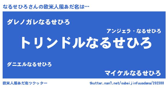 | 男性向けラノベタイトル風あだ名 | 『なるせひろ~年齢イコール彼女いない歴の魔法使い~』 |