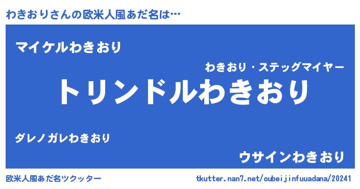 | 男性向けラノベタイトル風あだ名 | 『転生したらわきおりだった件』 |