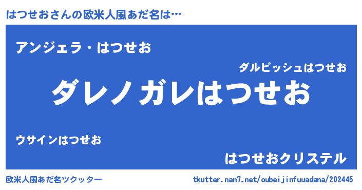 | 男性向けラノベタイトル風あだ名 | 『この素晴らしい世界にはつせおを!』 |