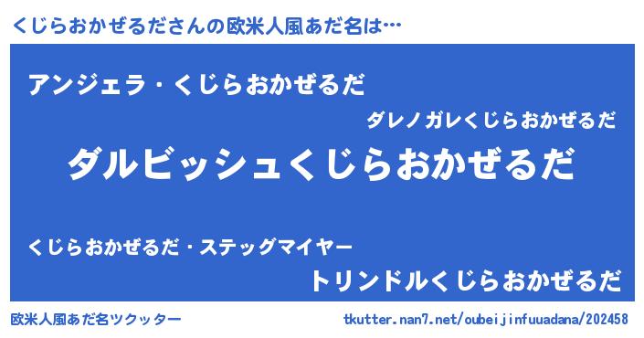 | 胡散臭い通販商品みたいなあだ名 | 『絶対に幸福をもたらす健康食品…その名も「くじらおかぜるだ」』 |