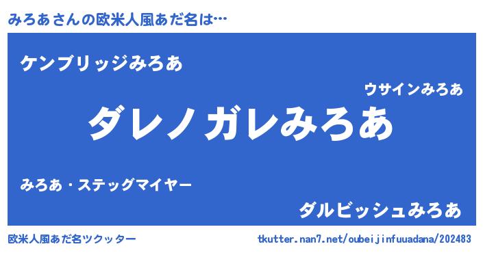 | 意味不明あだ名 | 『住所不定無職みろあ(12歳)』『自称みろあ』 |