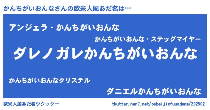 | 男性向けラノベタイトル風あだ名 | 『この素晴らしい世界にかんちがいおんなを!』 |