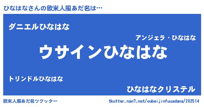 | 男性向けラノベタイトル風あだ名 | 『ひなはなの嫁は女の子じゃないと思った?』 |