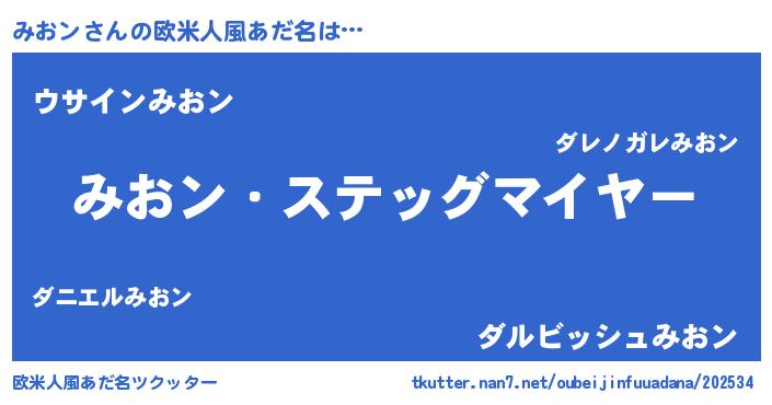 | 意味不明あだ名 | 『とにかく怪しいみおン』 |