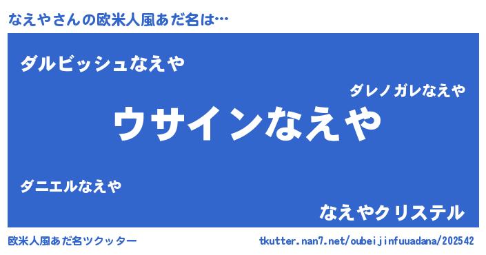 | 男性向けラノベタイトル風あだ名 | 『なえやの嫁は女の子じゃないと思った?』 |