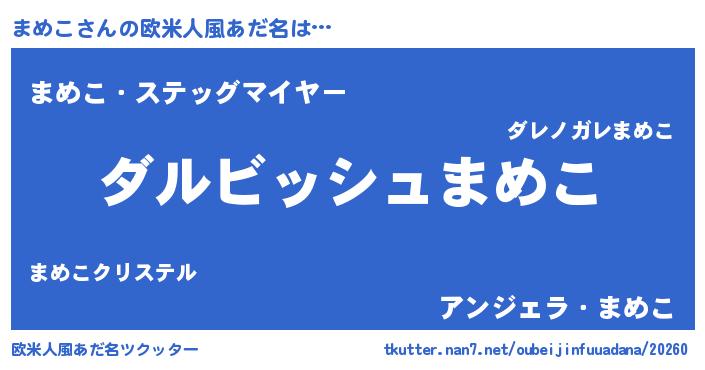 | 男性向けラノベタイトル風あだ名 | 『まめこという概念が存在しない退屈な世界 』 |